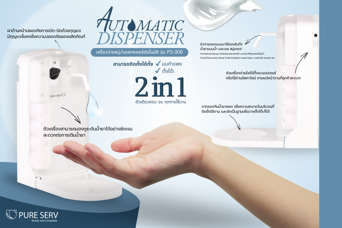 เครื่องจ่ายสบู่เหลว และแอลกอฮอล์ชนิดน้ำรุ่น PS-306