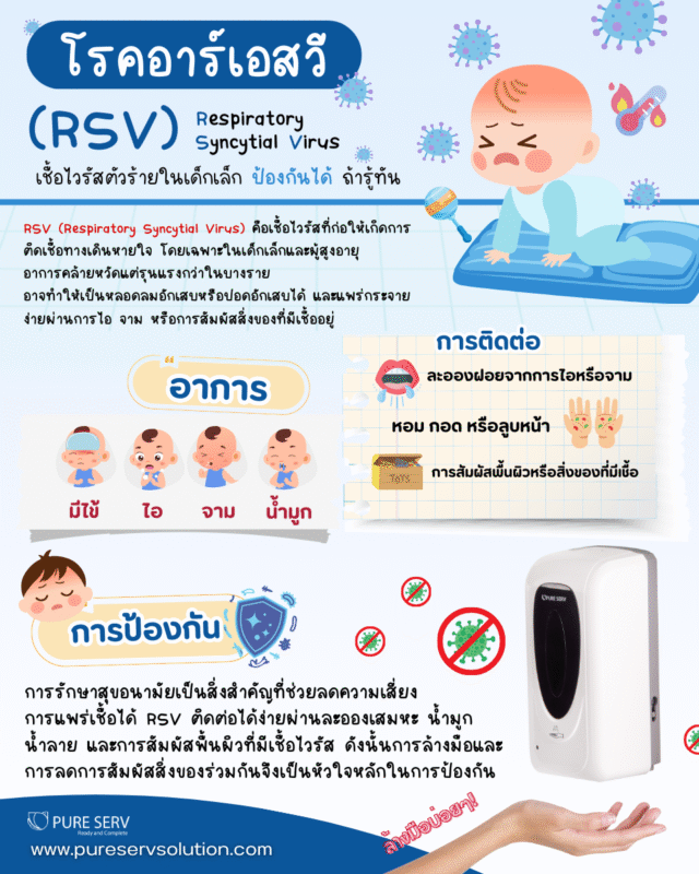เชื้อไวรัส RSV (Respiratory Syncytial Virus) กำลังระบาดในไทยตอนนี้ ส่วนใหญ่จะพบในเด็กเล็ก แต่ผู้ใหญ่ก็สามารถติดเชื้อได้ อาการที่พบบ่อย ได้แก่